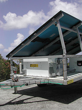 West Indies Solair This Mobile Solar Generator will supply 4000 WATTS ( 33 AMPS) of continuous 110VAC power, until the batteries are discharged. If the amount of power going into the batteries, from the SOLAR PANELS is equal to the amount of power going out, the batteries WILL NOT be discharged. The key to a SOLAR ELECTRIC SYSTEM is to match the power going in with the power going out to the loads. Because the sun is not always constant, it is advisable to have a large enough battery bank so that you have RESERVE CAPACITY during periods when there is less or no solar energy available.